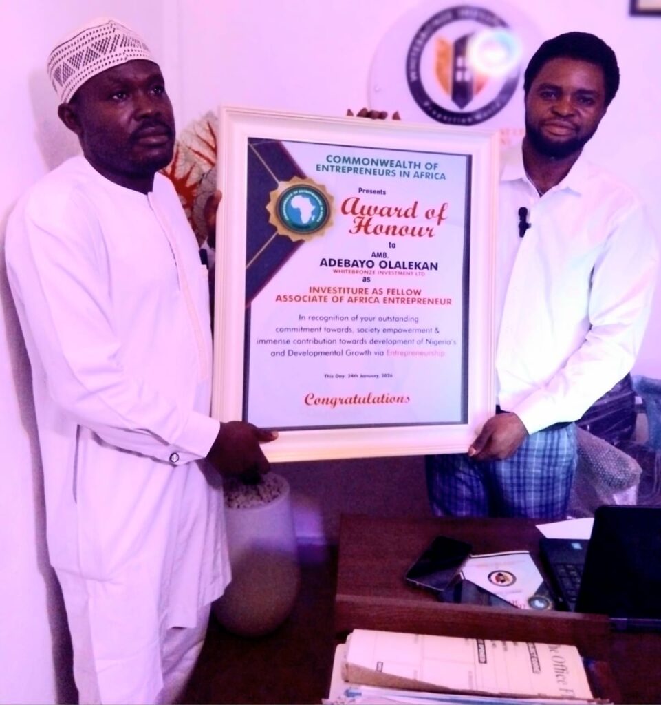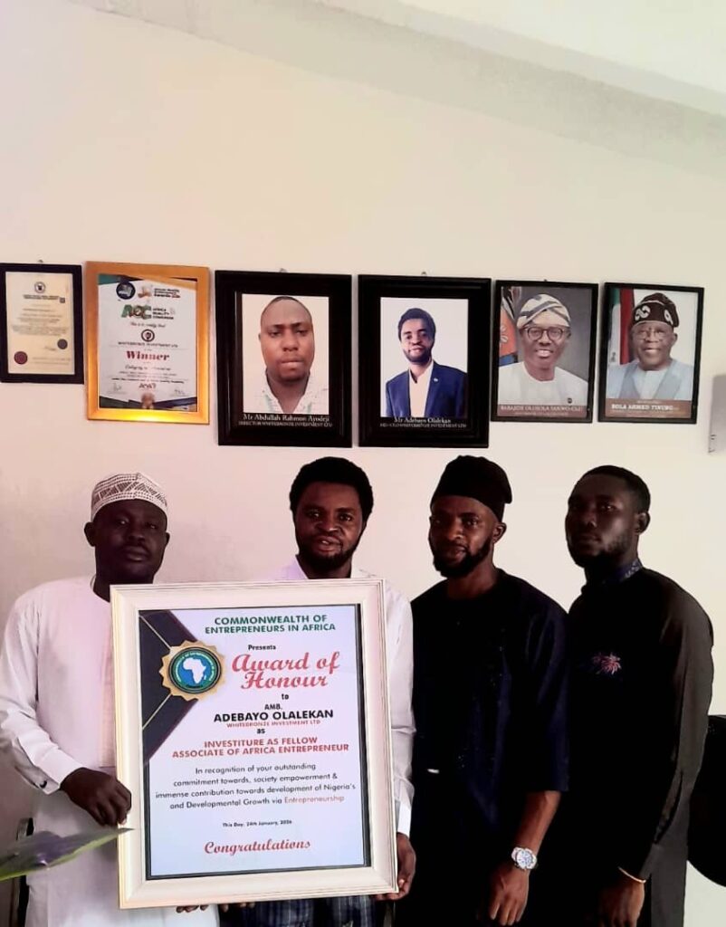 MD/CEO of WhiteBronze Investment LTD honoured as Ambassador of fellow associate of Africa Entrepreneurs in recognition of his outstanding commitment towards society empowerment & immense contribution towards development and growth of Nigeria via Entrepreneurship on the 24th of January,2026.